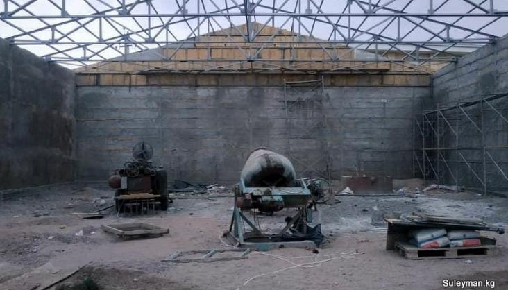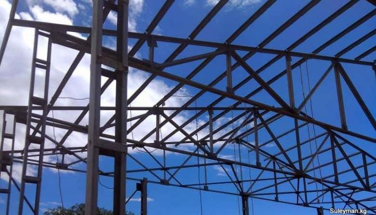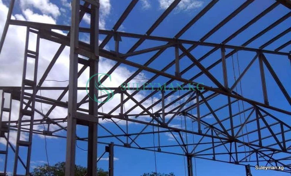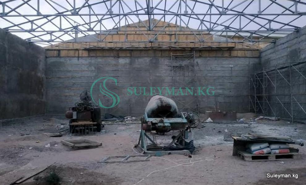 Склад в г.Балыкчы металлоконструкция и пенобетон. Размеры ангара 18х36 метров. Был поднят каркас из металла. Стены залиты пенобетоном.