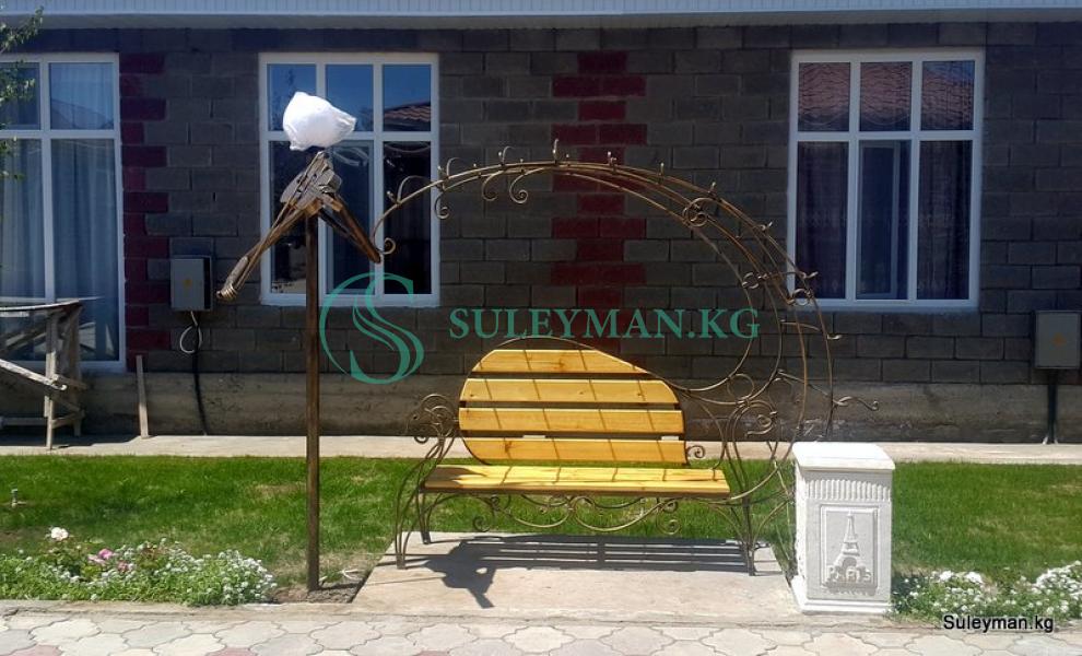 Цена за скамейку 12000 сом, цена фонарей со скрипкой и гитарой по 9000 сом, цена урны 5000 сом.