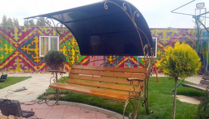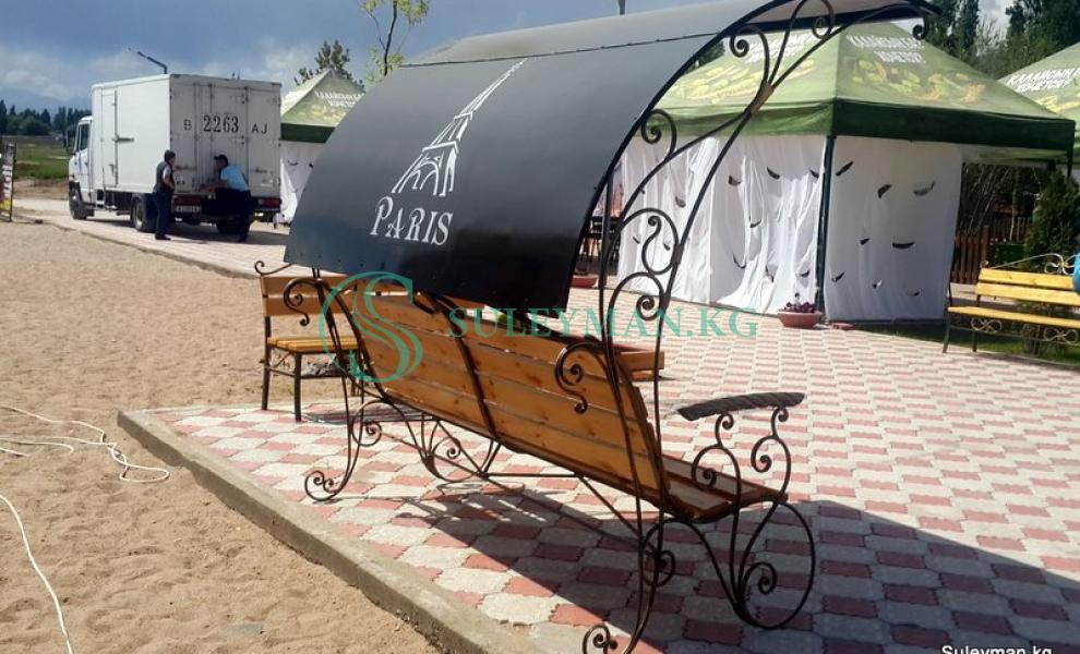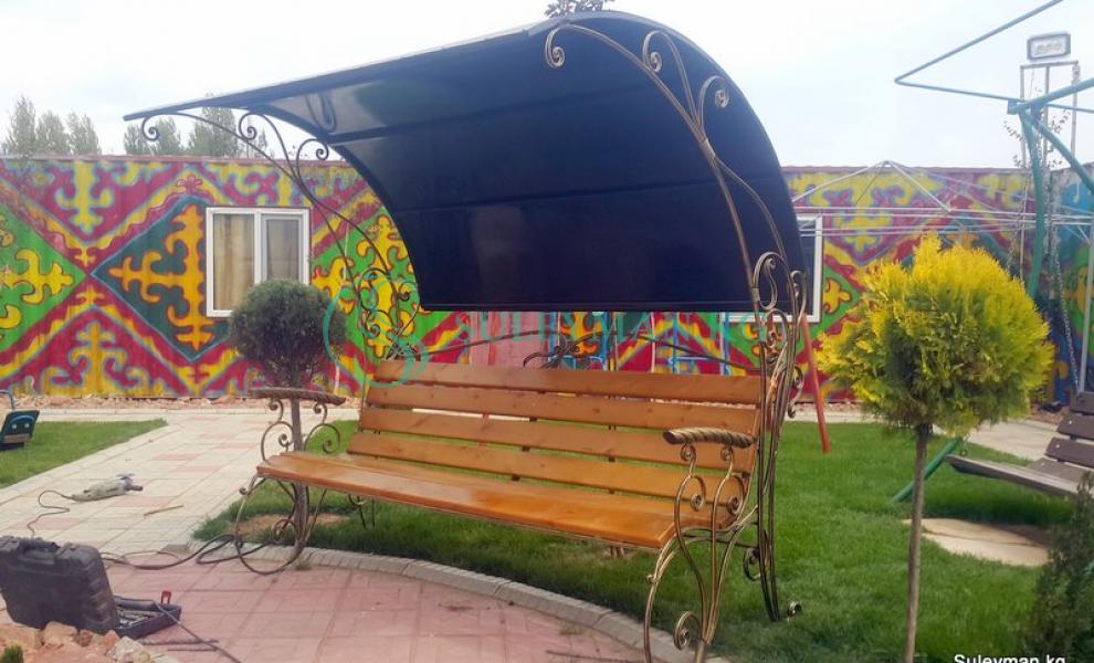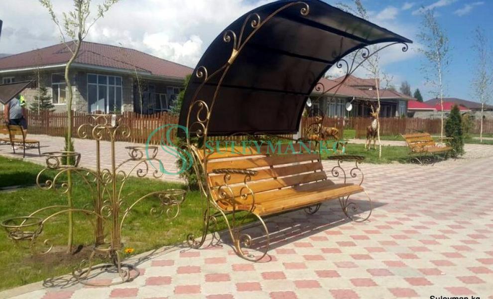Скамейка супер удобная и очень красивая которая украсит ваш двор. Зонд можно изготовить из разных материалов (металлический лист, полигаль, иранский шифер) на ваш выбор.