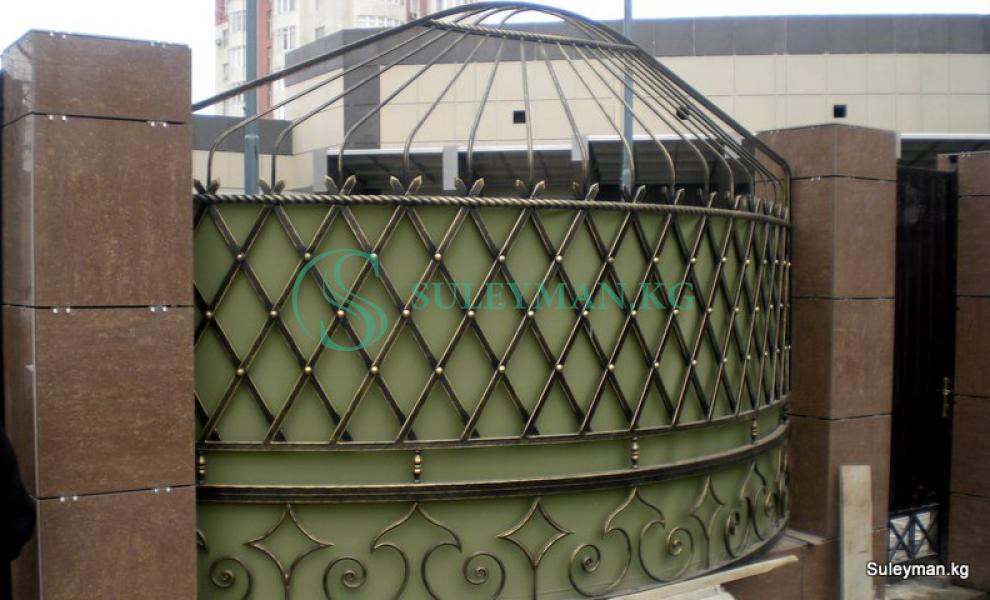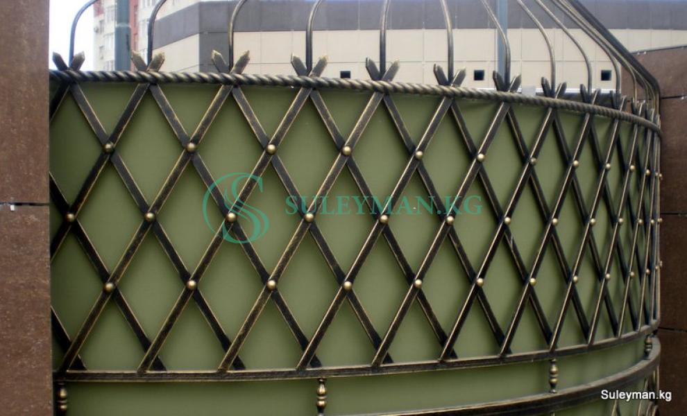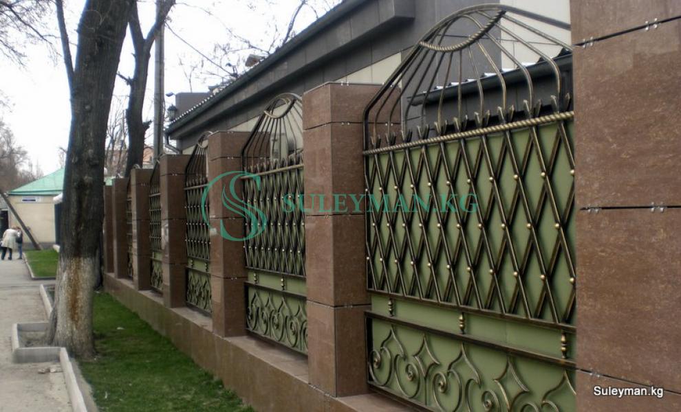 Металлическое ограждение в национальном стиле в мед. центре «Юрфа» на Токтогула. Указана цена за метр квадратный кованого забора. Вы можете купить или заказать металлические заборы, ограждения для дома, дачи и полисадника в наших мастерских в г.Бишкек и Балыкчы.