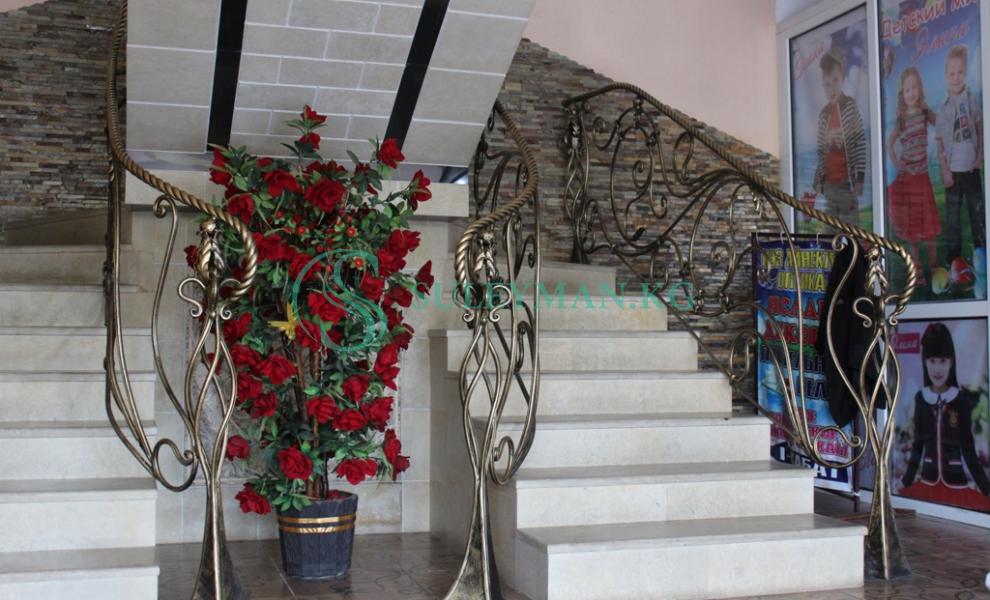 В начале планировалось что на лестнице будут балясины из Травертина. Но с ними лестничный марш получался узкий. Для решения этой проблемы заказчик обратился к нам. Чтобы объемные стойки перил не уменьшали лестничный марш, мы установили перила без промежуточных стоек. В итоге получились красивые перила с непрерывным художественным узором.