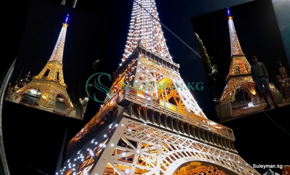 Уменьшенная копия Эйфелевой башни высотой 8 метров, сделана для строящегося пансионата «Париж» в селе Чок-Тал. Башня днем смотрится не плохо. Но ночью, когда на ней загораются 2500 мерцающих светодиодов и 16 фонарей. Эффект совсем другой. Это не передать словами!