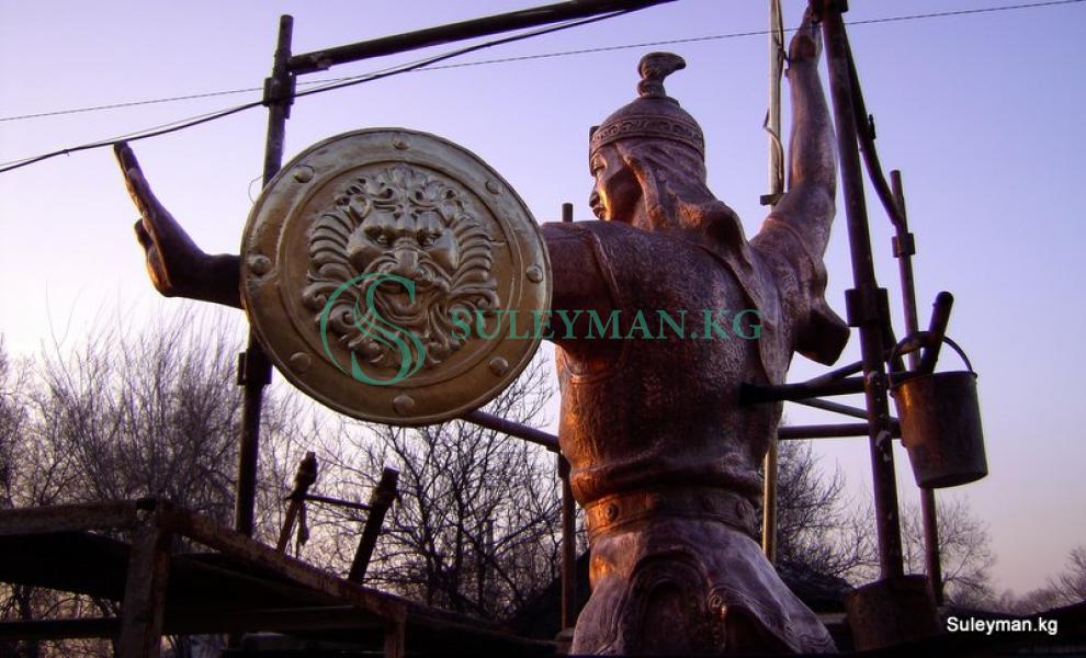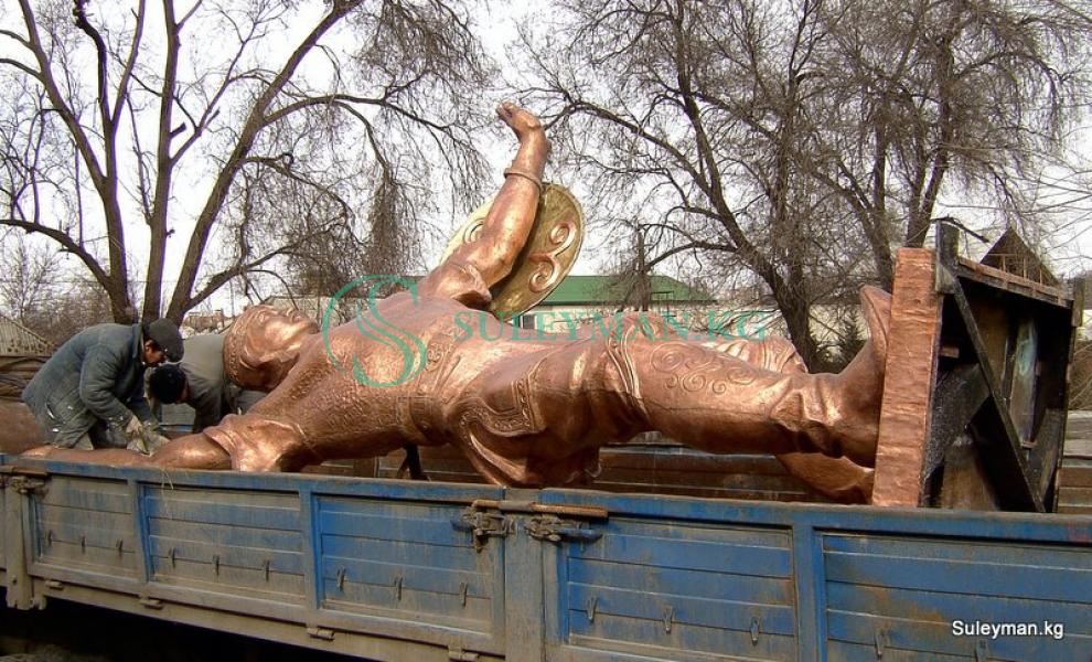 Монумент выполнен из меди, копье и щит бронза. Высота 5 метров. Работы по изготовлению памятника выполнялись в Бишкеке и уже готовый памятник отвезли в г.Тараз для последующего монтажа. Цена на эксклюзивные работы зависит от многих факторов и считается индивидуально.