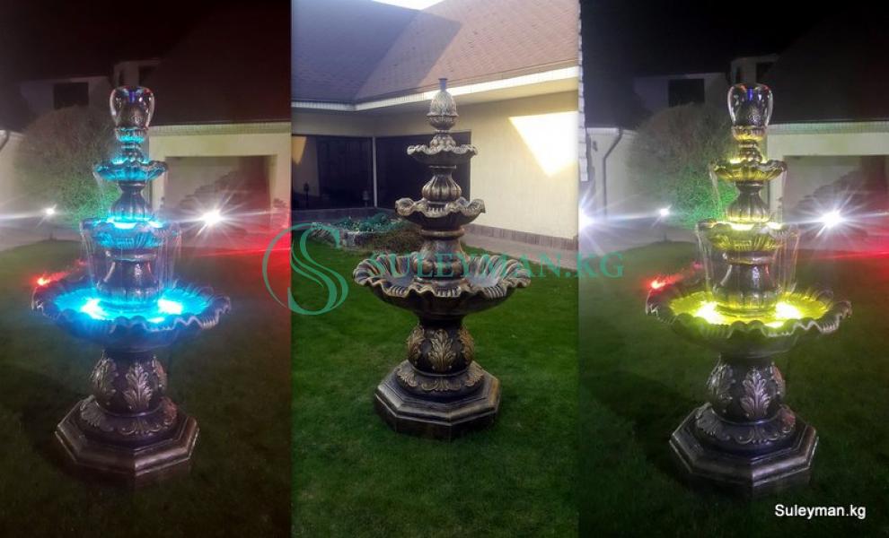 - 60 000 сом — Стоимость фонтана с монтажом и подсветкой. Транспортные расходы не входят в стоимость.