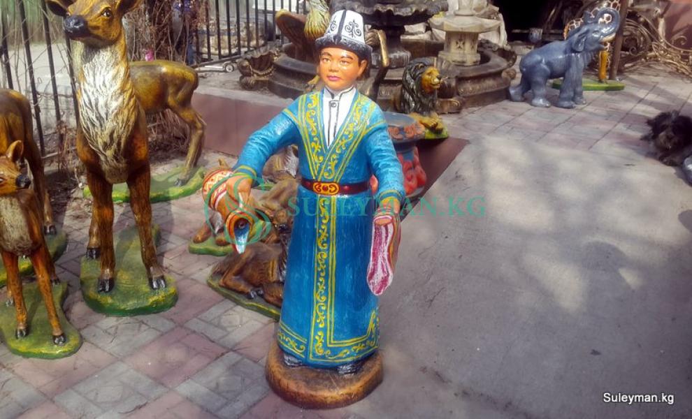 По многочисленным просьбам наших заказчиков мы изготовили скульптуры мальчика и девушки в национальных кыргызских костюмах. Скульптуры очень подходят для зон отдыха в национальном стиле. Отлично будут смотреться у входа в юрту. Мальчика с кувшином можно поставить вместо умывальника, подключив воду (сзади скульптуры имеется вход на ?15 мм для подключения воды). С самого кувшина выведен выход на ?15 мм для того чтобы поставить кран. Или же ваши мастера могут установить кран включения воды более скрытно. Например чтобы он срабатывал при нажатии на педаль, или когда человек встает перед скульптурой на специальную площадку.